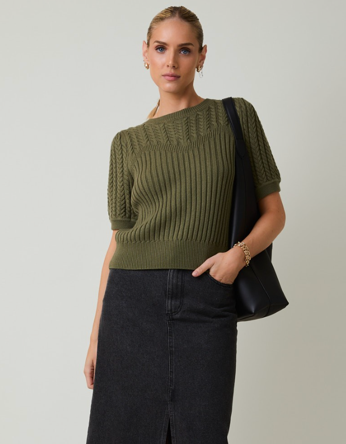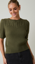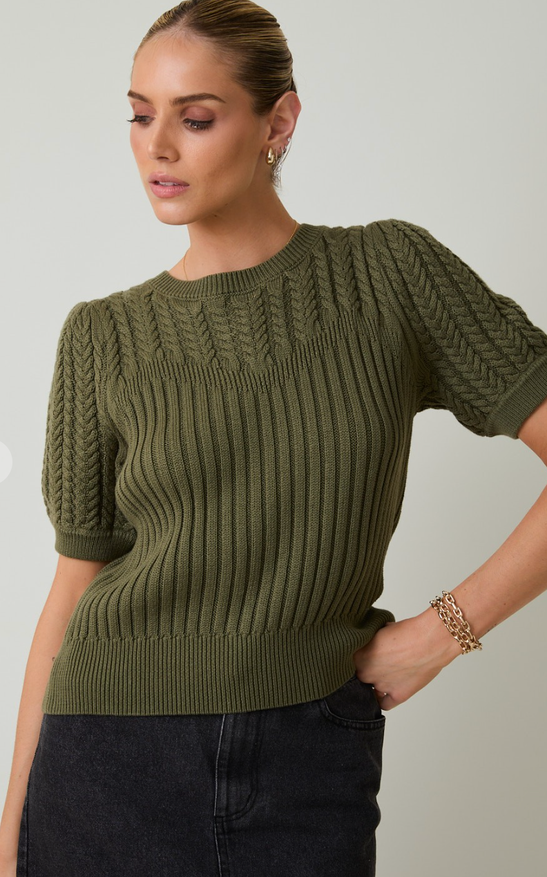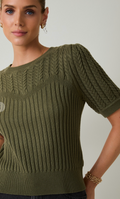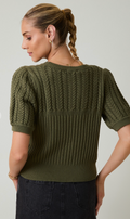 This Round Neck Puff Short Sleeve Cable Sweater combines timeless knitwear elegance with a trendy puff sleeve design. Crafted to provide a comfortable fit, its cable-knit texture adds depth and style to your outfit. Perfect for layering or wearing alone, it brings a chic, feminine touch to any look while keeping you cozy and fashionable all day.