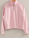 Elevate your workouts and everyday activities with confidence in our sweatshirt. Its stand collar, drop shoulders, and relaxed sleeves provide a comfortable fit, while the half zipper closure and ribbing at the cuffs and hem add both style and functionality. Stride through your day with ease.