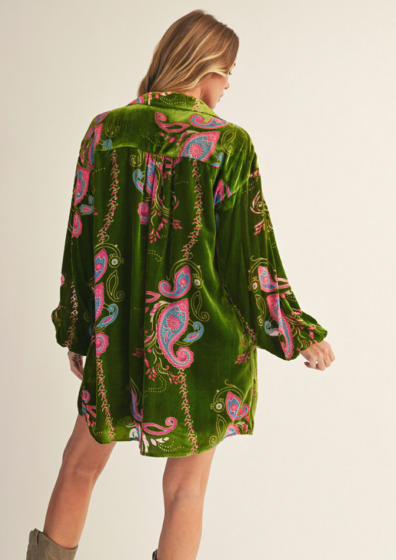 Paisley Print Velvet Dress