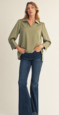 Elevate your everyday wardrobe with this sophisticated stain top, designed for effortless style and comfort. The classic 3/4 sleeves provide the perfect balance between coverage and breathability, while the wide sleeve cuffs are finished with elegant pearl buttons that add a touch of refined detail. Whether you're dressing up for the office or keeping it casual, this versatile piece transitions seamlessly from day to night. The quality construction ensures durability, making it a reliable staple you'll reach for again and again. Perfect for layering or wearing solo, this top delivers both polish and practicality.