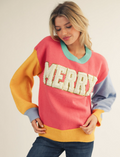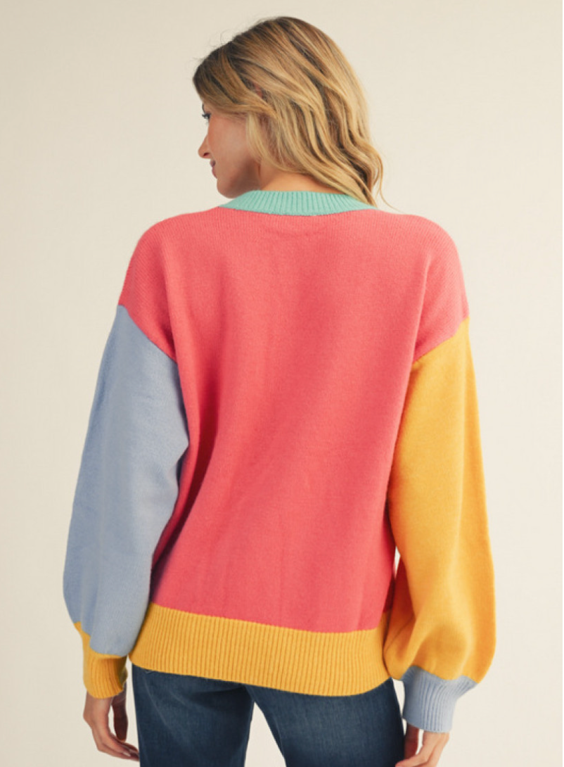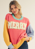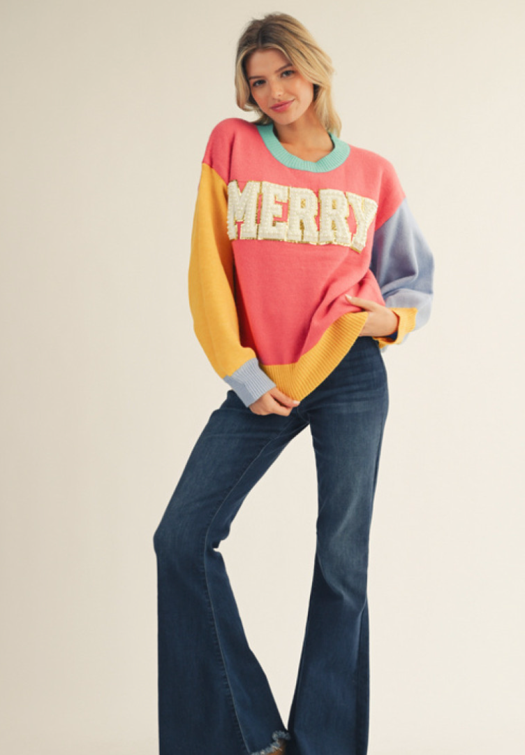 Embrace festive style with this charming drop shoulder sweater top, featuring a modern color block design that effortlessly transitions from holiday gatherings to everyday wear. The relaxed drop shoulder silhouette offers comfortable, flattering coverage, while delicate pearl accents add an elegant touch of sophistication. Perfect for layering or wearing solo, this versatile piece brings warmth and seasonal cheer to your wardrobe without sacrificing contemporary flair.