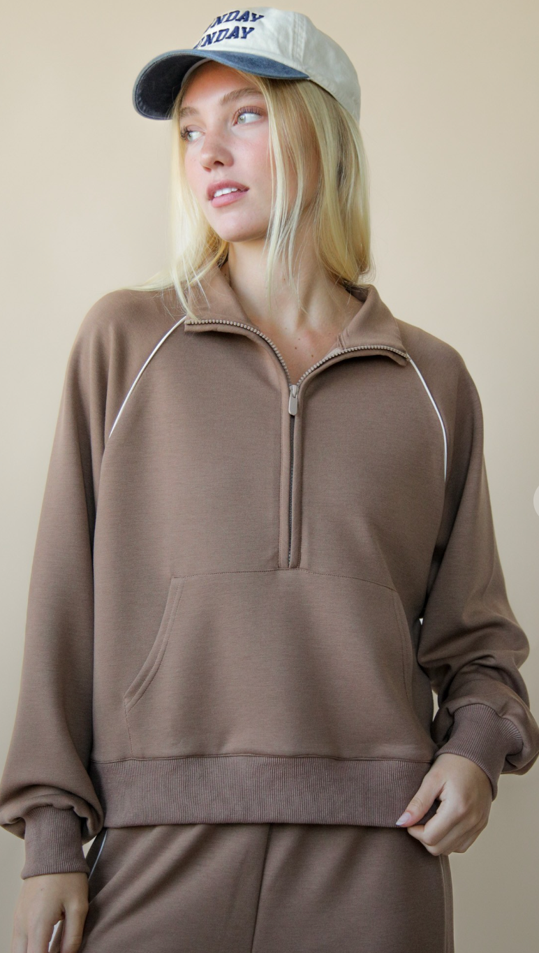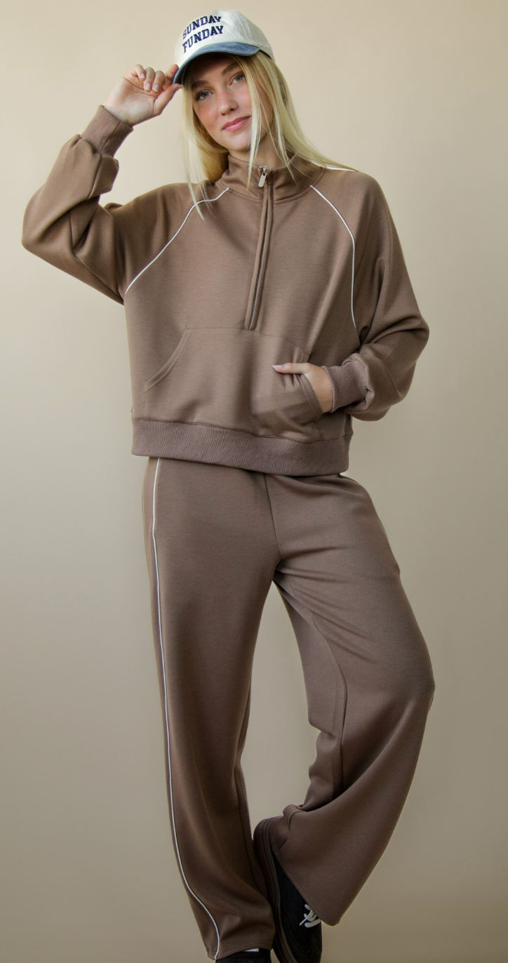 Elevate your casual wardrobe with this Half Zip Up Piping Detail Knit Top and Pant Set. Designed for comfort and style, the soft knit fabric ensures all-day ease, while the piping detail adds a sleek, modern touch. The half-zip top offers versatile wear, perfect for layering or on its own. Paired with matching pants, this set is ideal for relaxed weekends or effortless errands, combining functionality with a polished look. Embrace casual sophistication without sacrificing comfort.