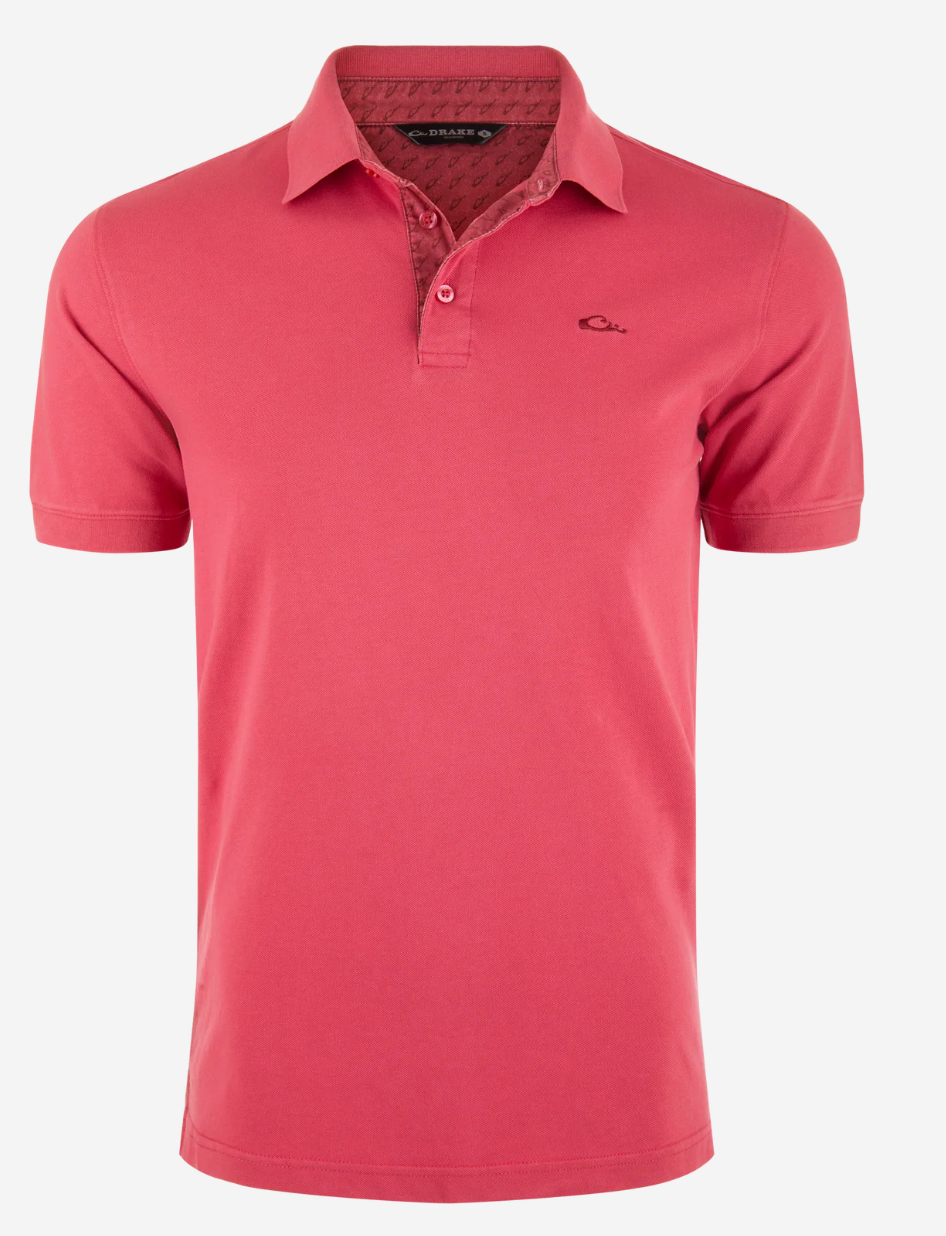 The Drake Pique Polo is our take on the classic pique polo but with a twist. We have added stretch to modernize the performance and then added our distinctive embroidered Drake duck head logo on the chest. We kept it timeless in silhouette with a three-button placket with dye-to-match faux mother-of-pearl buttons, a 2 x 2 rib knit collar and sleeve cuffs, and a split tail hem. Combining uniqueness and classic styling makes the Drake Pique Logo Polo your next favorite shirt.