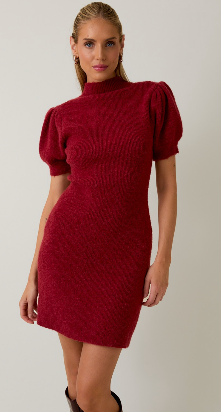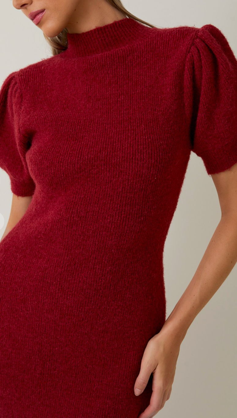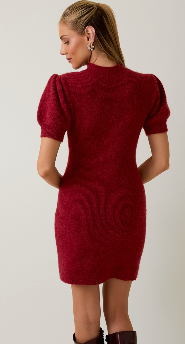 Elevate your style effortlessly with this Mock Neck Puff Short Sleeve Sweater Dress. Designed for a flattering fit, its soft knit fabric offers comfort while the puff sleeves and mock neck add a trendy, feminine touch. Perfect for day-to-night wear, this mini dress combines cozy warmth with chic appeal, making it an essential piece to refresh your wardrobe.