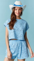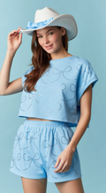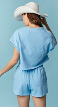 Elevate your casual style with this eye-catching two-piece set featuring shimmering rhinestone hot fix details that catch the light with every move. The cropped short-sleeve top pairs perfectly with matching shorts for a coordinated look that's both trendy and comfortable. Whether you're heading out for a night with friends or looking to make a statement at your next event, this set delivers sparkle and sophistication. The hot fix rhinestones add a luxe touch without compromising on wearability, making it an instant favorite for anyone who loves a little glamour in their everyday wardrobe.