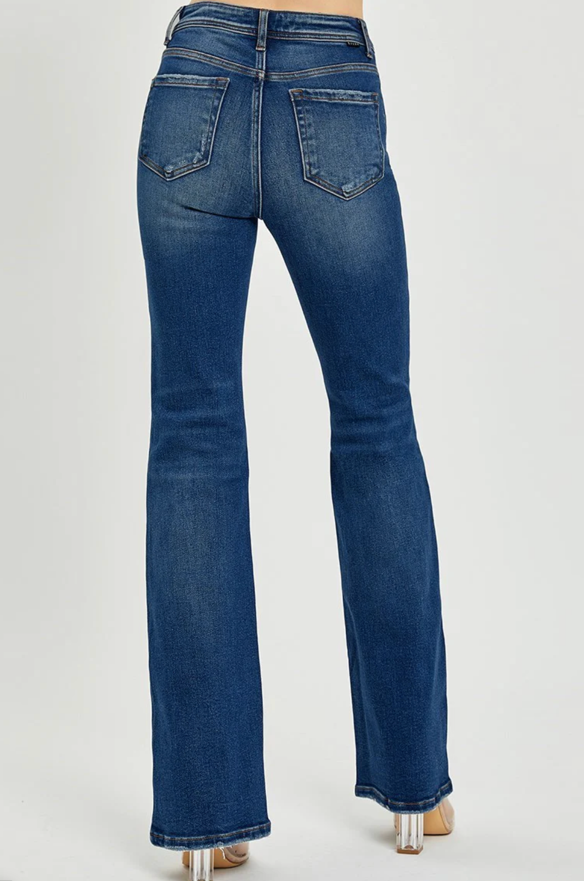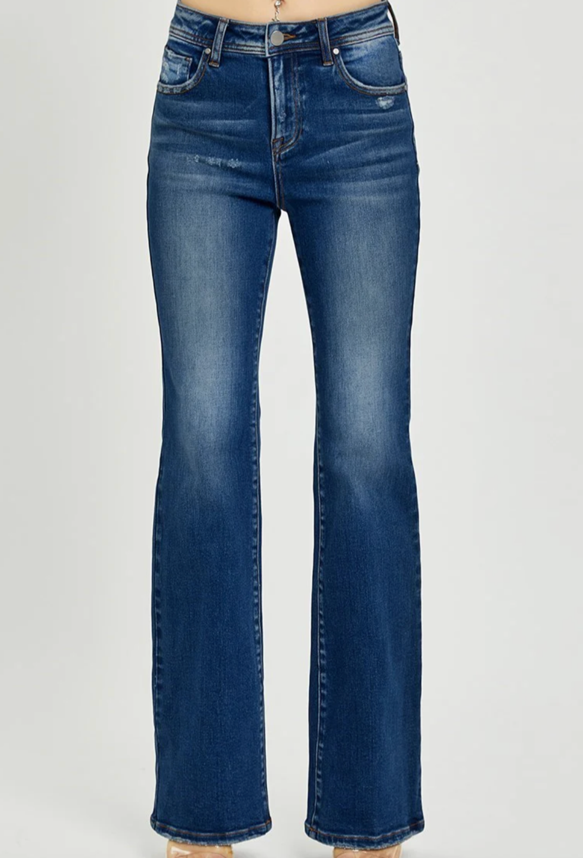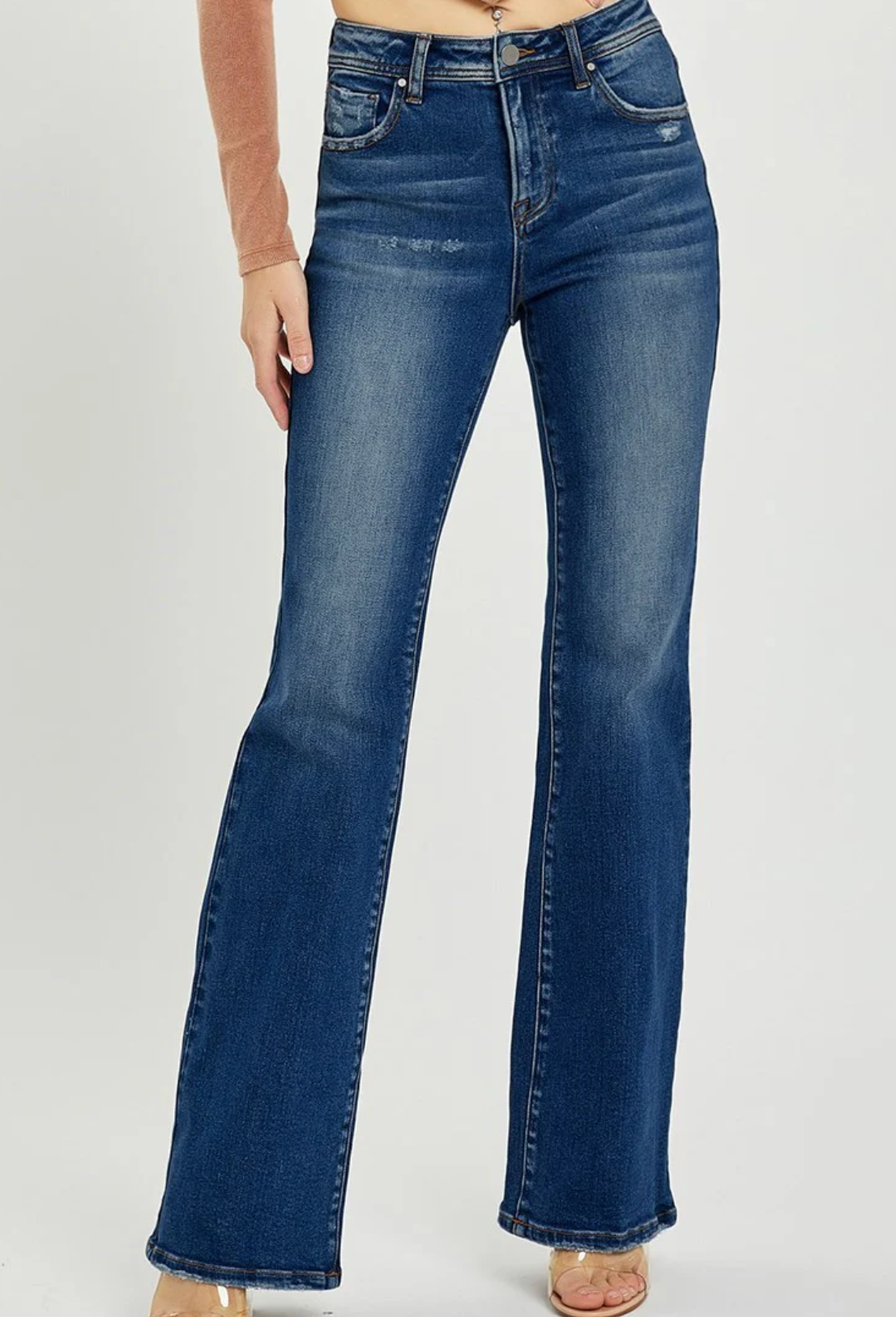 Risen Jeans with a High-Rise Bootcut Silhouette.