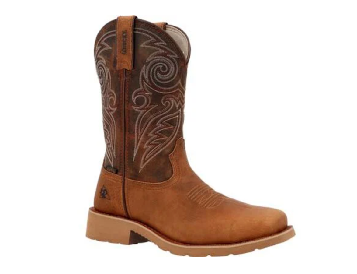 The 12" Rocky® MonoCrepe brings a new meaning to lightweight. Built on our proprietary lightweight oil & slip resisting Rocky® MonoCrepe outsole and our Rocky® Air-Port Lite® sponge PU footbed with memory foam, this square toe boot keeps your feet energized so you can get the job done on the ranch. Waterproof full grain leather combined with all around waterproofing by Rocky®, guarantees to keep your feet dry and protected when you need it most. Made to last with the help of a double stitch flex welt construction and a fiberglass shank for added support giving you a stable platform that helps reduce foot fatigue and discomfort. An expansion fit seam allows for easy on and off after a long day of work. This steel toe boot meets ASTM F2413 protective toe and electrical hazard standards.
