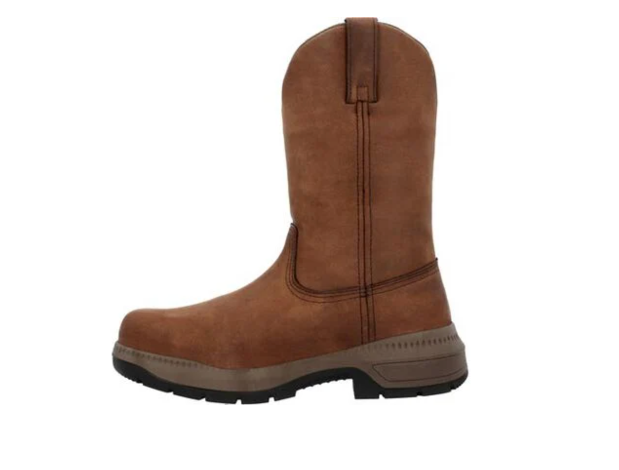 Ready to take on the day, this rugged 11” pull-on work boot is prepared for anything. Tackle any job with waterproof full grain 2.0mm crazy horse leather and a direct attached oil- & slip-resisting rubber outsole with a PU midsole. Wet and oil spilled environments are no match for this boot with all around waterproofing by Rocky, guaranteed to keep your feet dry and protected when you need it most. Our Rocky® Air-Port Lite® Sponge PU Footbed with memory foam is a high-performance, cushioning and comfortable footbed that will keep you on your feet until the job is done. Built to last with the help of a fiberglass shank for added support giving you a stable platform that helps reduce foot fatigue and discomfort. This boot meets ASTM F2892 electrical hazard standard.