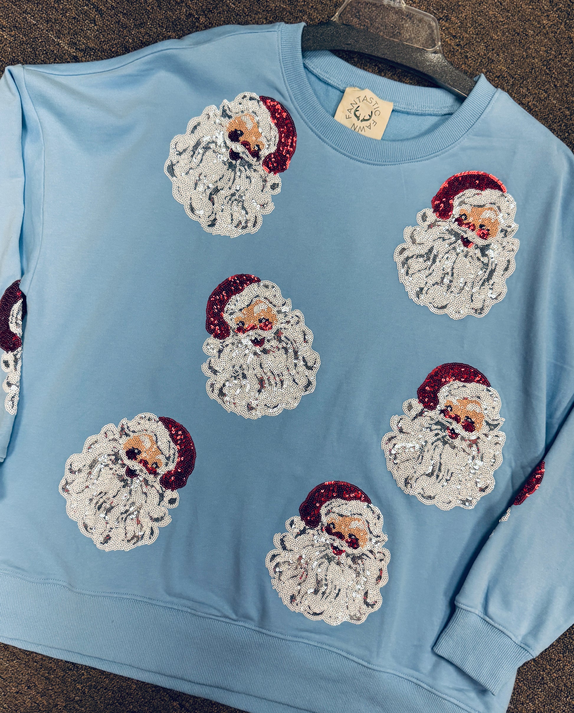 Celebrate the holiday season in style with the Santa Sequins Sweatshirt. Featuring sparkling sequin details that bring festive cheer to your wardrobe, this cozy sweatshirt combines comfort and eye-catching design. Perfect for holiday gatherings or casual winter days, it keeps you warm while making a statement. Add a touch of sparkle and holiday spirit to your outfit with this unique seasonal essential.