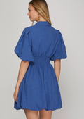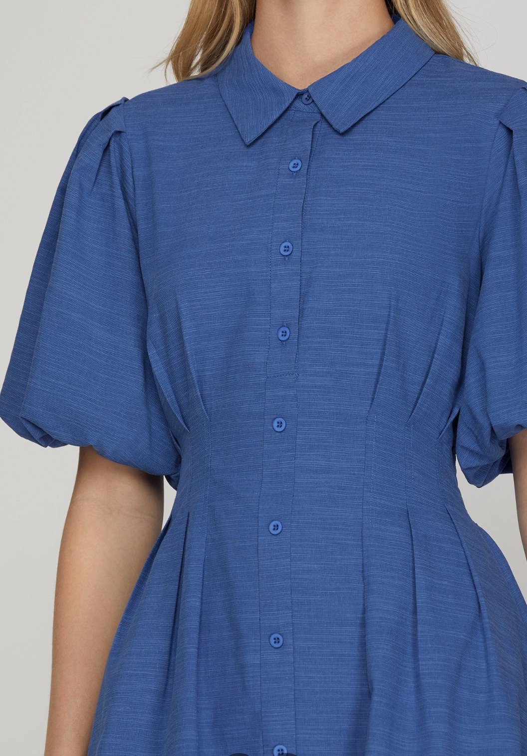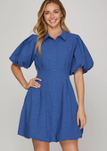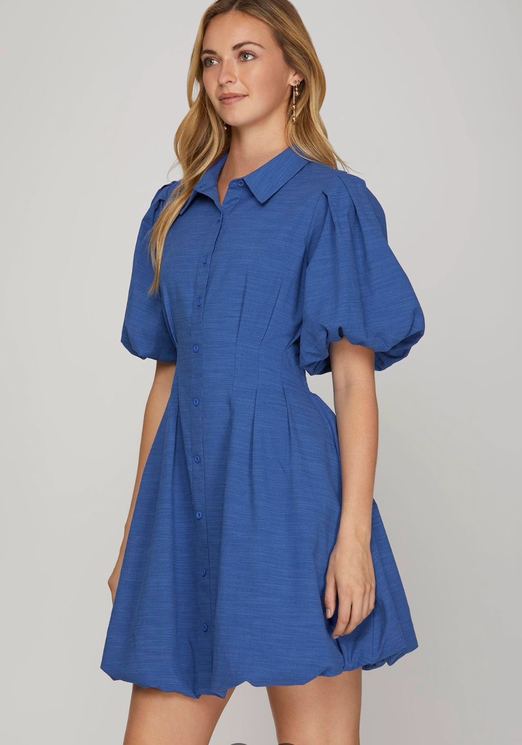 Elevate your wardrobe with this charming bubble dress, designed to turn heads with its distinctive silhouette. The voluminous puff sleeves and playful balloon hem create an effortlessly chic look, while delicate back smocking adds refined detail and structure. Functional pockets keep your essentials close, and the button-down front offers versatile styling options. Perfect for brunch dates, casual outings, or making a statement at any occasion, this woven piece combines comfort with undeniable style.