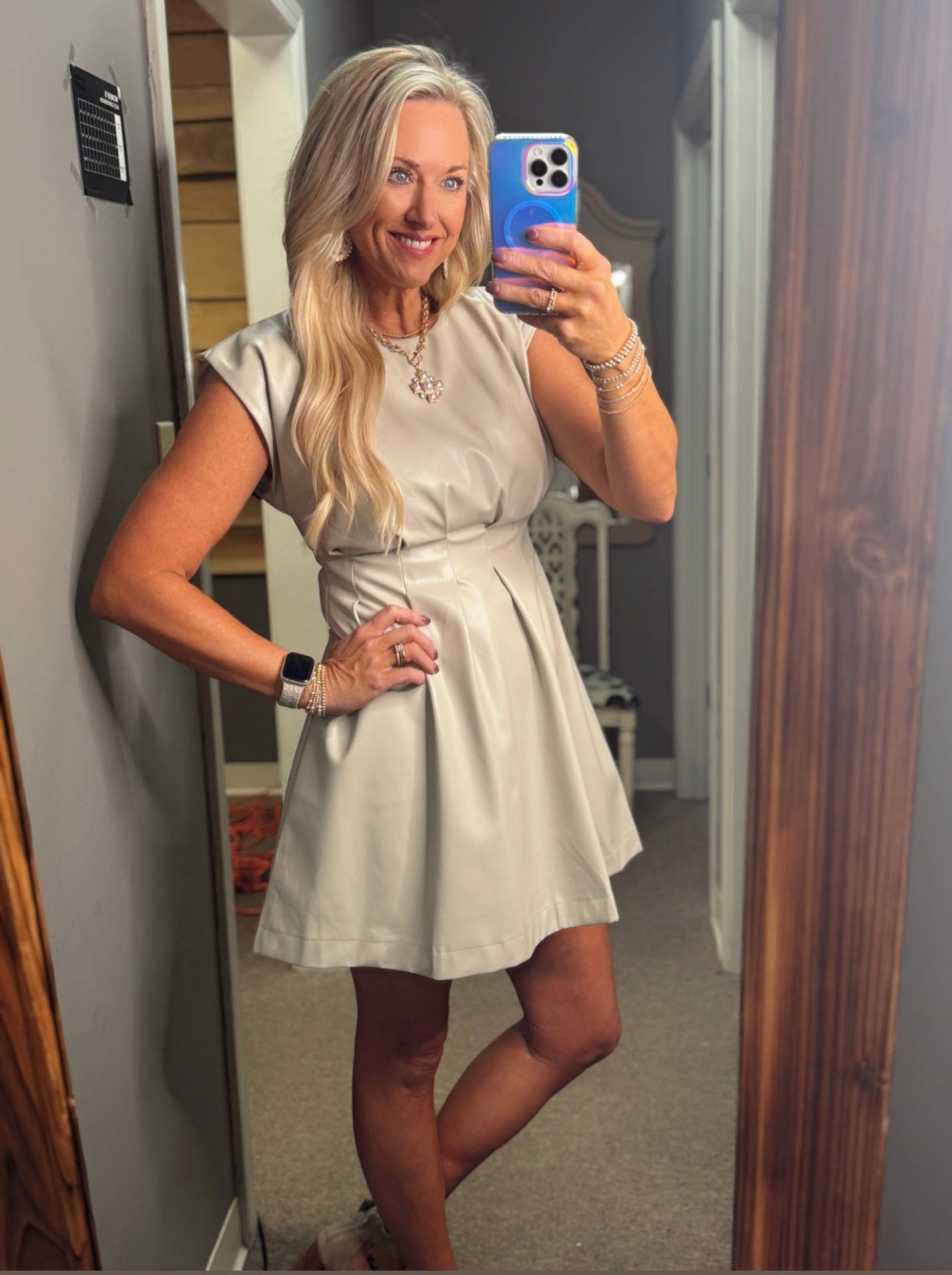Elevate your style with this Faux Leather Round Neck Waist Pleated Midi Dress. Designed to flatter, its fitted waist accentuates your silhouette while the pleated skirt adds elegant movement. The round neck offers a classic look, perfect for day-to-night wear. Crafted from soft faux leather, this dress delivers a sleek, modern edge without compromising comfort. Ideal for making a confident statement at any event, it’s a versatile addition to your wardrobe that blends sophistication with contemporary flair.