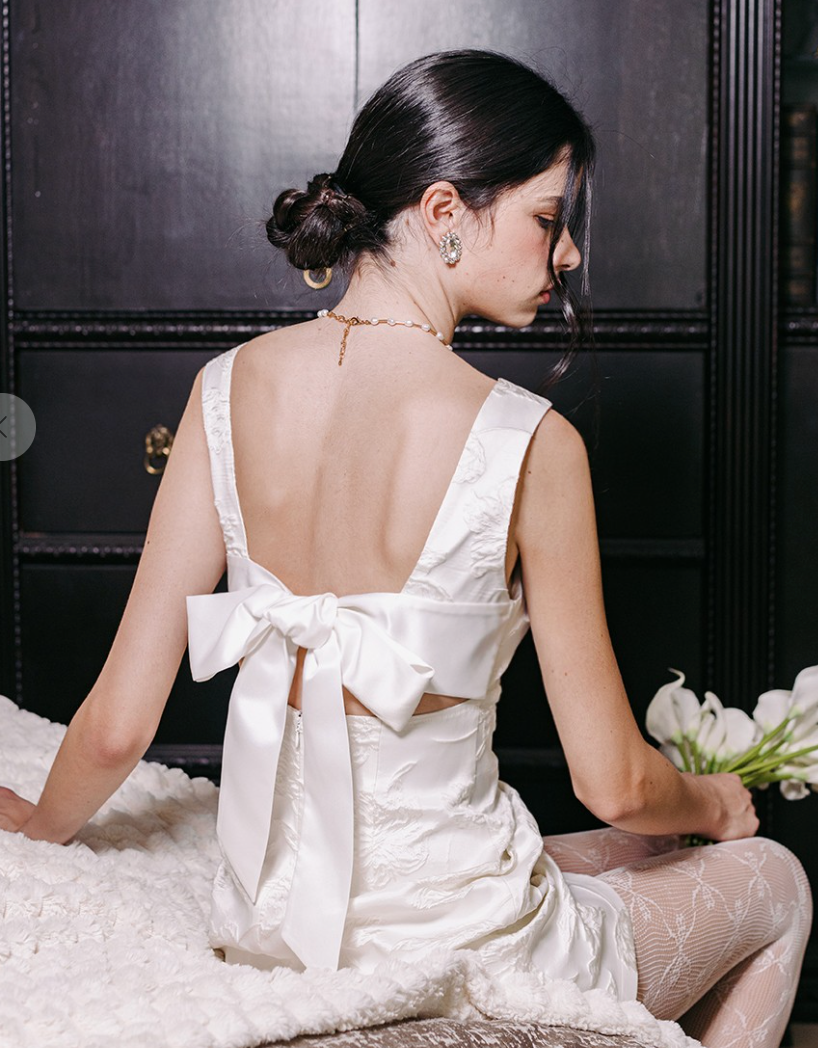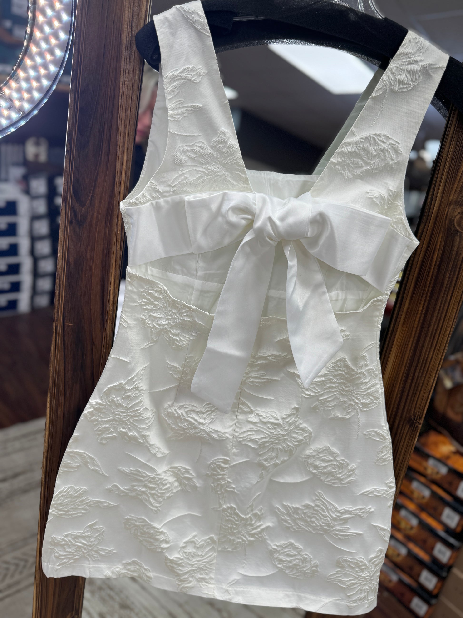 Wrap yourself in elegance with our Textured Jacquard Dress! Featuring a delicate jacquard design and a satin bow back, this dress is perfect for any special occasion. The textured fabric adds a touch of luxury and the bow detail adds a feminine touch. Elevate your style with this must-have dress.