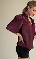 Elevate your wardrobe with this V-neck textured fabric top featuring wide sleeves for a modern, relaxed fit. The subtle shine adds a touch of sophistication, making it perfect for both day and evening wear. Experience comfort and style combined in one versatile piece that effortlessly enhances your look.