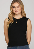 Discover effortless style and comfort with this sleeveless knit rib tank top. Its soft, stretchy fabric hugs your silhouette while allowing breathability, making it perfect for layering or wearing alone on warm days. The ribbed texture adds subtle detail, elevating your casual look with a touch of sophistication. Ideal for versatile styling from day to night, this tank top is a must-have staple for your wardrobe.