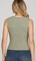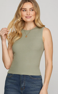 This sleeveless knit rib tank top combines comfort and style effortlessly. Its breathable fabric and ribbed texture provide a flattering fit that adapts to your body shape. Perfect for layering or wearing on its own, this versatile top adds a touch of casual elegance to any outfit. Ideal for warm days or as a base layer, it keeps you comfortable while enhancing your look.