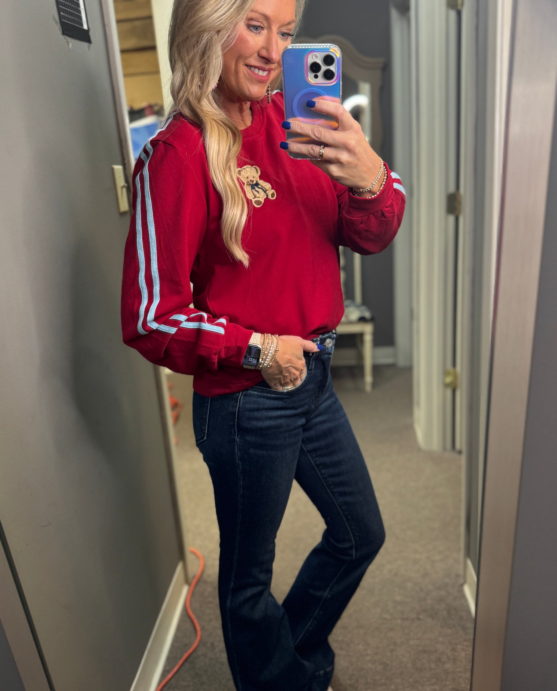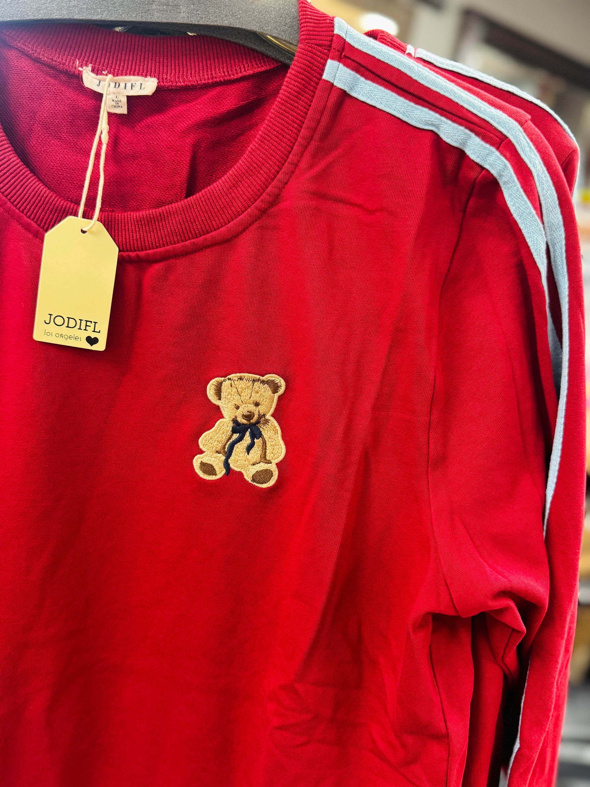 This cozy garment features side sleeves with a charming contrast detail, accented by a sweet teddy bear in the corner. Perfect for adding a playful yet stylish touch to your wardrobe, it combines comfort with unique design that stands out effortlessly. Embrace warmth and individuality in one delightful piece.