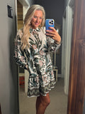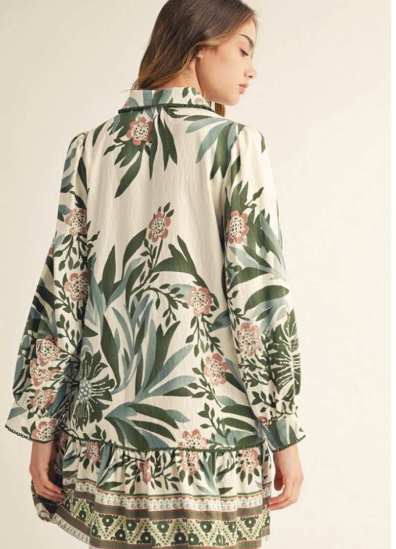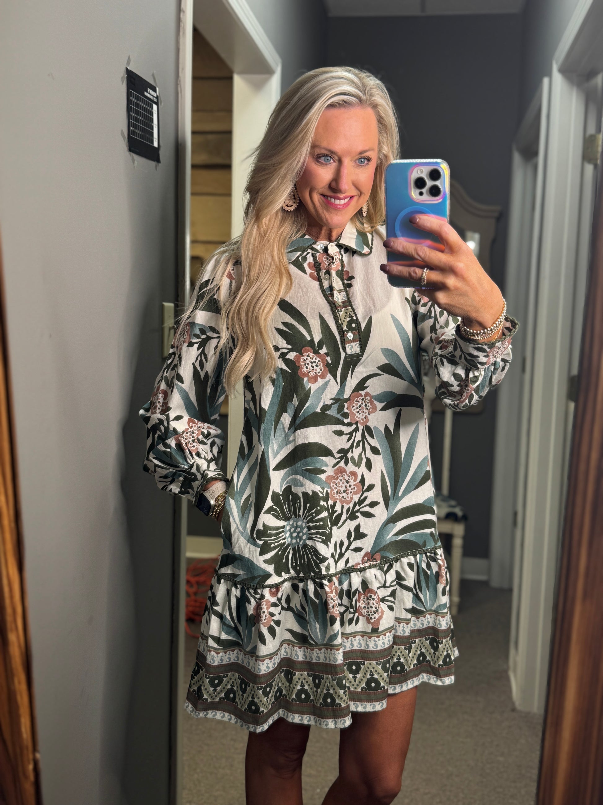 Embrace effortless elegance with this floral dress featuring long puff sleeves and a flattering collared neckline. The front button-down design adds timeless charm, while side pockets offer convenient storage without sacrificing style. Delicate lace trim and a ruffled hem create a feminine touch that moves gracefully with you. Perfect for any occasion, this dress combines comfort and sophistication to elevate your wardrobe.