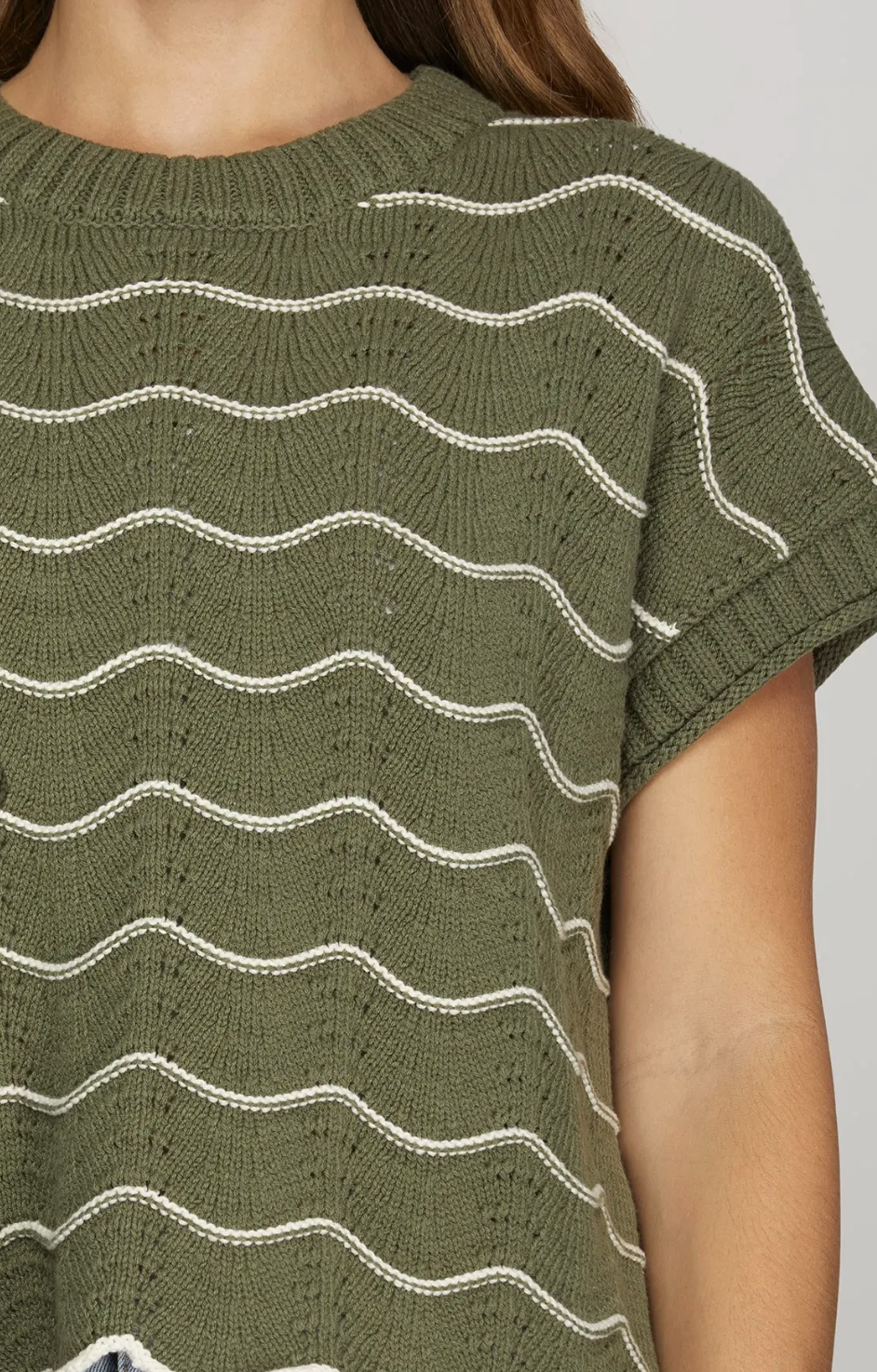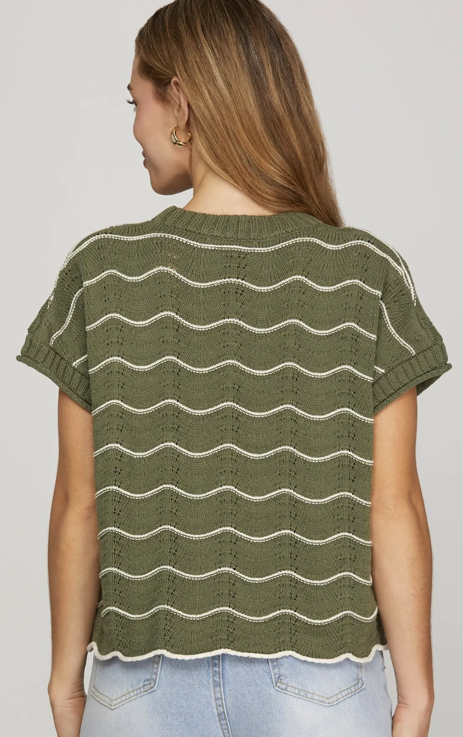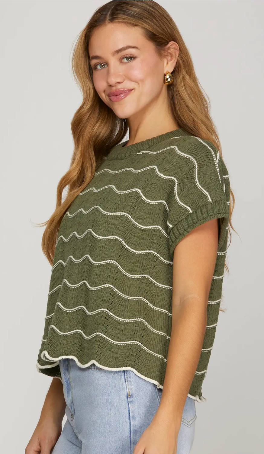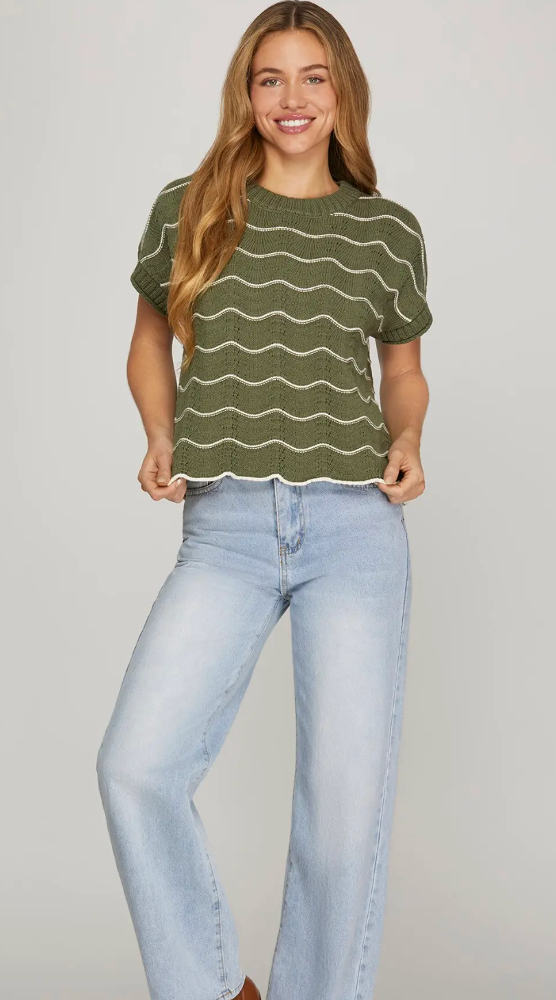 Elevate your casual wardrobe with this drop short sleeve scallop striped knit sweater top. Its unique scalloped trim and classic striped pattern create a stylish, fresh look perfect for layering or wearing on its own. Crafted for comfort and easy movement, this top combines timeless design with modern appeal to enhance any outfit effortlessly.