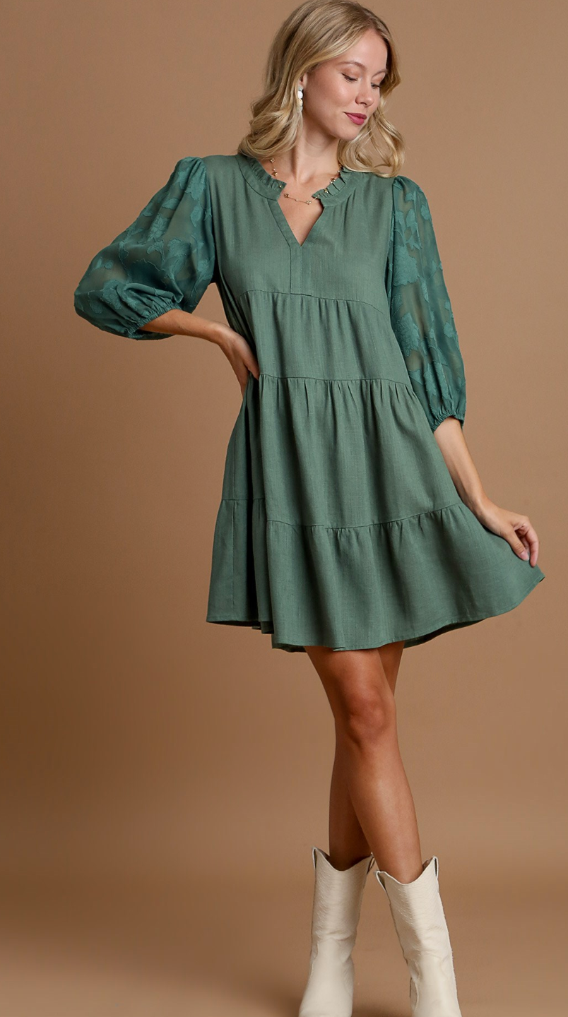 Elevate your wardrobe with the Floral Contrast Sleeve Tiered Dress, designed to blend feminine charm with modern style. Its tiered silhouette offers a flattering, flowing fit, while the contrasting floral sleeves add a unique, eye-catching detail. Perfect for both casual outings and special occasions, this dress combines comfort and elegance effortlessly, making it a versatile addition to your collection.