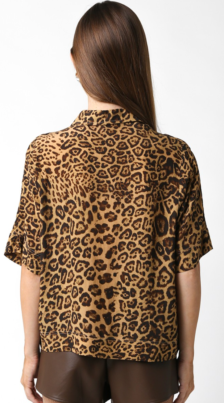 Elevate your wardrobe with the leopard Lindsay Top, designed with chic half sleeves and a classic button-down front. This versatile piece offers effortless style and comfort, perfect for both casual outings and polished looks. Embrace bold patterning that adds a striking touch to any ensemble, making it a must-have for your collection.