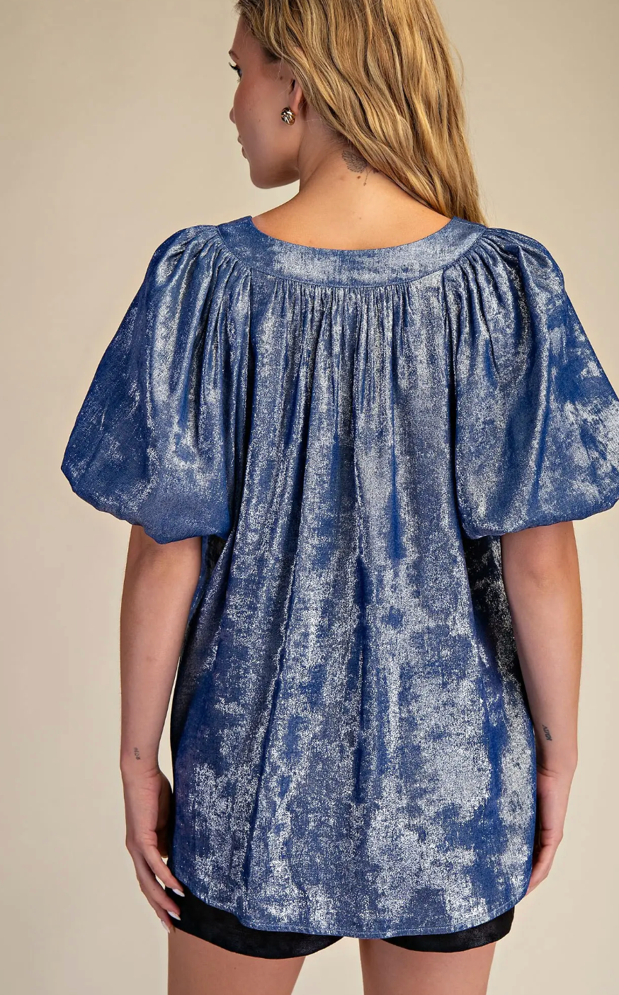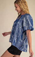 Elevate your wardrobe with The Perfect Shimmering Top, featuring a flattering V-neck and elegant puff sleeves that add a touch of sophistication. Its subtle shimmer catches the light beautifully, making it ideal for both daytime outings and evening events. Experience comfort and style combined in one versatile piece that effortlessly enhances any look.