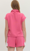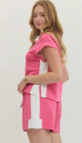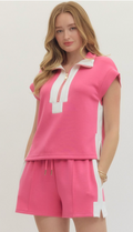 Elevate your casual wardrobe with this versatile two-piece set. The zip-front pullover features striking contrast accents and a flattering side slit band, while the lightweight knit construction keeps you comfortable all day. Pair it with the matching pull-on shorts, complete with a drawstring waistband, functional side pockets, and elegant pintuck detailing. Both pieces are unlined and non-sheer, offering the perfect blend of style and practicality for effortless everyday wear.