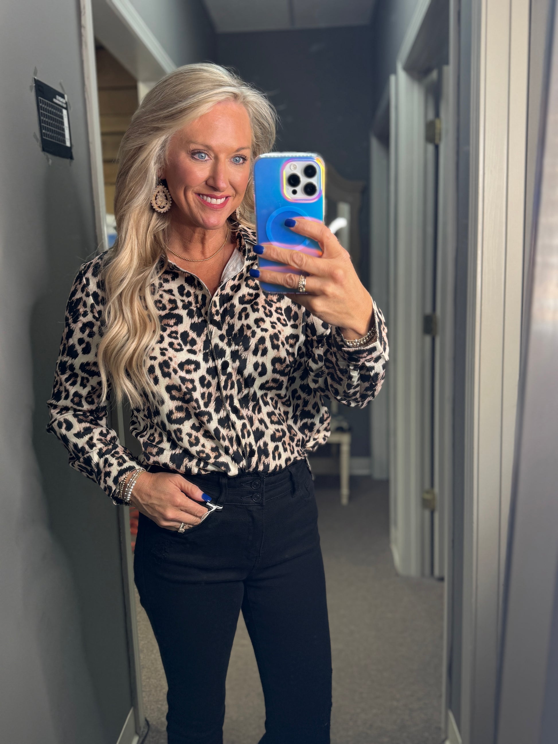 Elevate your wardrobe with these long sleeve leopard printed woven button-down shirts. Crafted for both comfort and style, the lightweight fabric ensures all-day wearability, while the bold leopard print adds a fierce touch to any outfit. Perfect for layering or wearing on its own, this versatile shirt brings effortless confidence and eye-catching appeal to your everyday look. Whether for casual outings or chic office wear, it’s a statement piece designed to turn heads and boost your style.