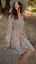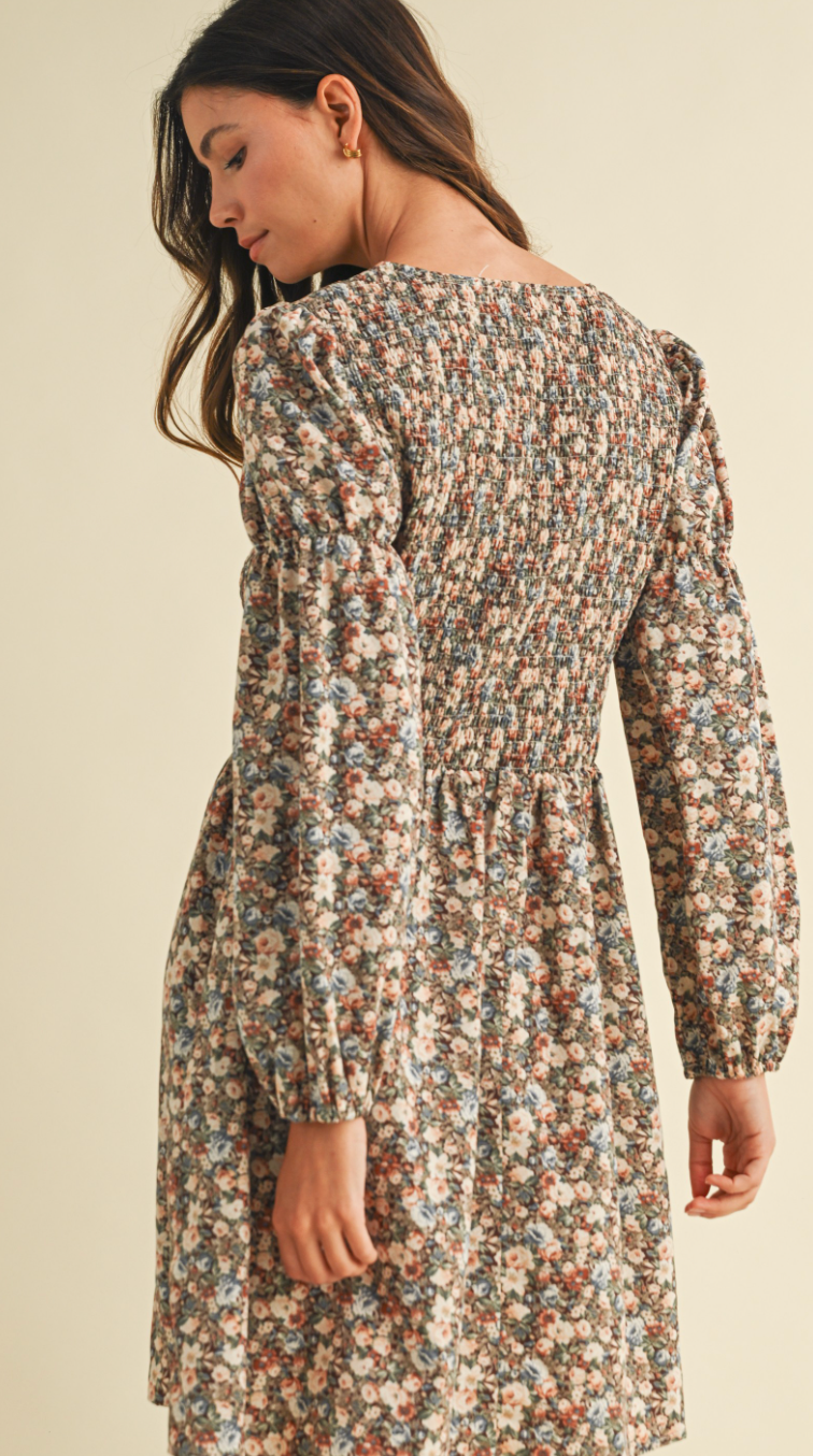 Embrace timeless charm with this Vintage Flower Print Mini Dress, featuring delicate smocking details that enhance its flattering fit. Its soft floral pattern and mini length create a fresh, feminine look perfect for warm days or casual outings. Effortlessly stylish, this dress combines comfort and elegance for a wardrobe staple you’ll reach for again and again.