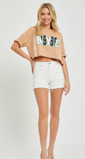 TUMMY CONTROL HIGH RISE FRAY HEM SHORTS
