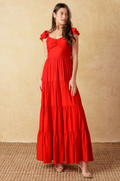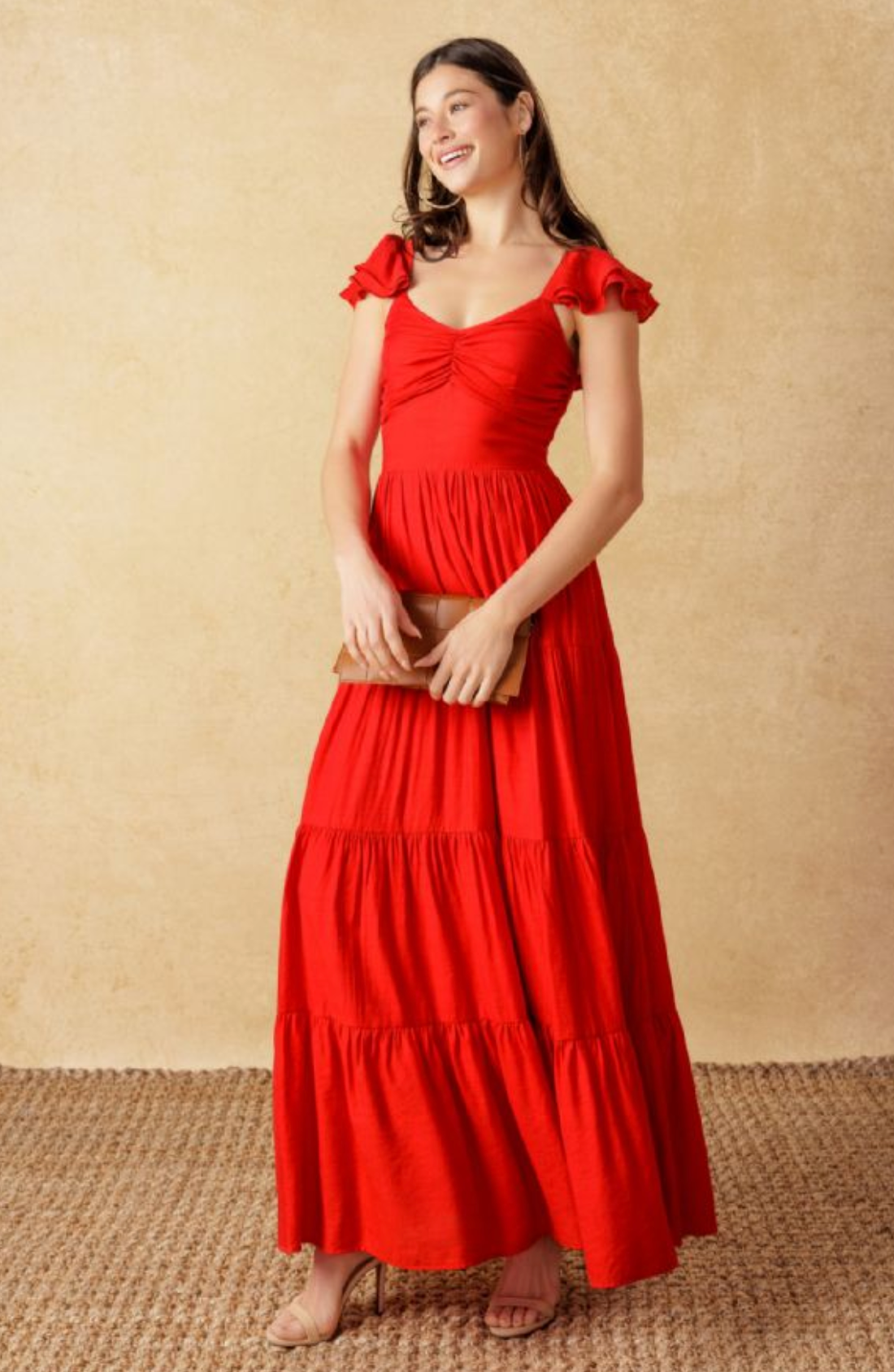 Elevate your wardrobe with our solid woven ankle dress. With a stylish cami top and cinched front bodice, this dress is both elegant and comfortable. The layered sleeves and tiered skirt add a unique touch, while the back zipper closure ensures a perfect fit. A must-have for any fashion-forward individual!