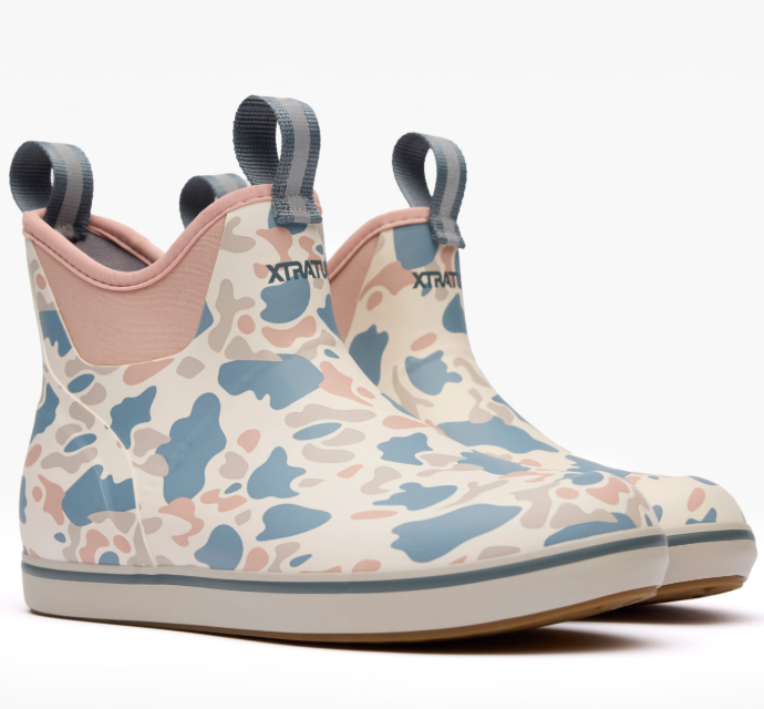 The Ankle Deck Boot collection has been crafted specifically for off-shore anglers. Anglers are athletes, and like any athlete they demand the best footwear to help them perform at a high level. We've created a lightweight design with the same slip-resistant Chevron outsole found on our Legacy boots. The ADB is a great option for anyone looking for non-slip and waterproof footwear for like on land or on the water and this version features our new ivory duck camo pattern. For those looking for a commercial grade ankle height deck boot please search for the Wheelhouse Boot.