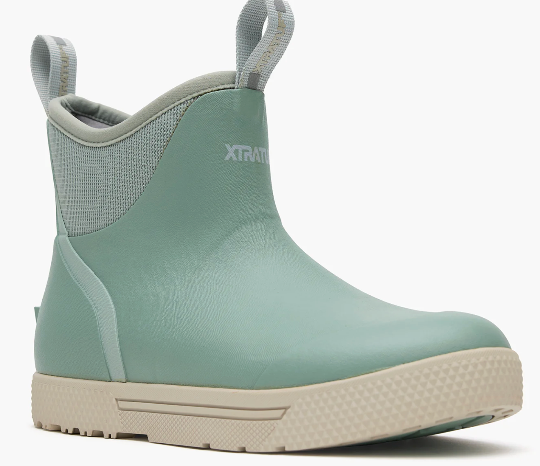 The XTRATUF Wheelhouse is the commercial grade version of the classic Ankle Deck Boot. When you are on your feet 12 hours or more, feet often will swell. This boot has a wider fit to address this issue and keep you comfortable. The 6-inch upper is reinforced in high wear areas, such as the toe and heel, for maximum durability. This boot features a molded EVA insole for all-day comfort, and a slip resistant, non-marking outsole.