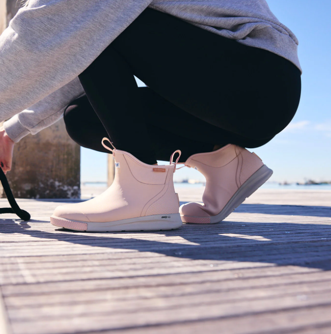 The Ankle Deck Boot Sport is the ultimate in comfort, offering agility with a sneaker-like feel. It is 30% lighter than other 6 in deck boots and provides a long cushion life and high energy return that will keep you comfortable, so you can stay out longer. It offers 100% waterproof protection and best in class, commercial grade slip resistance.